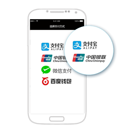 微雨易支付,为iOS/Android原生/H5 App提供支付解决方案:支持微信支付、支付宝支付、银联手机支付、百度钱包等。